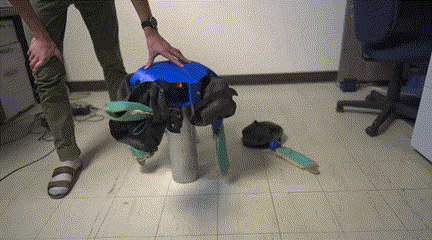 这些变化使机器龟的肢体能够在有利于行走的圆柱形几何形状,和有利于游泳的平鳍几何形状之间来回切换,进行适应性变形。在真正下水测试时,机器龟通过行走和匍匐前进的方式靠近水面,到达水域后,机器龟就将腿变成鳍状肢,使其能够以基于升力和阻力的水上步态进行畅游。