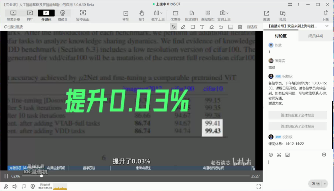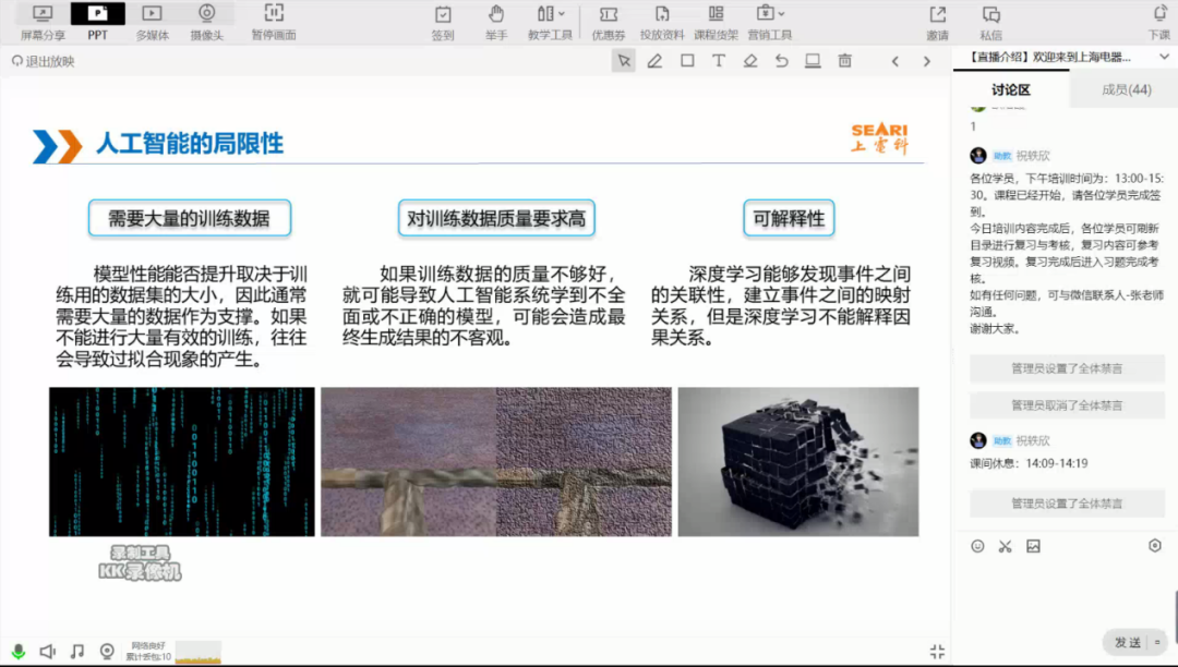 本次培训采取线上直播形式,参加学员共计44人,来自中国电信股份有限公司上海机器人星空xk、中国联合网络通信有限公司上海市分公司、中移(上海)信息通信科技有限公司、上海人工智能创新中心、宝信软件股份有限公司、上海建工集团投资有限公司、上海浦东发展银行股份有限公司、上海复旦微电子集团股份有限公司、健康云(上海)数字科技有限公司、新智道枢(上海)科技有限公司、上海有个机器人有限公司等30多家企事业单位。