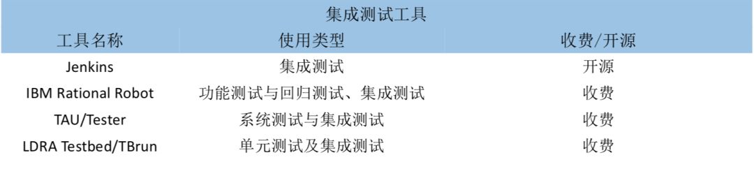 一些模块在单独工作时能运行的很好,但是连接起来后并不能保证很好的工作,这个时候就需要引入集成测试。一般会在单元测试的基础上,将所有模块按照设计要求(如根据结构图)组装成为子系统或系统,进行集成测试。集成测试常用的测试工具包括: