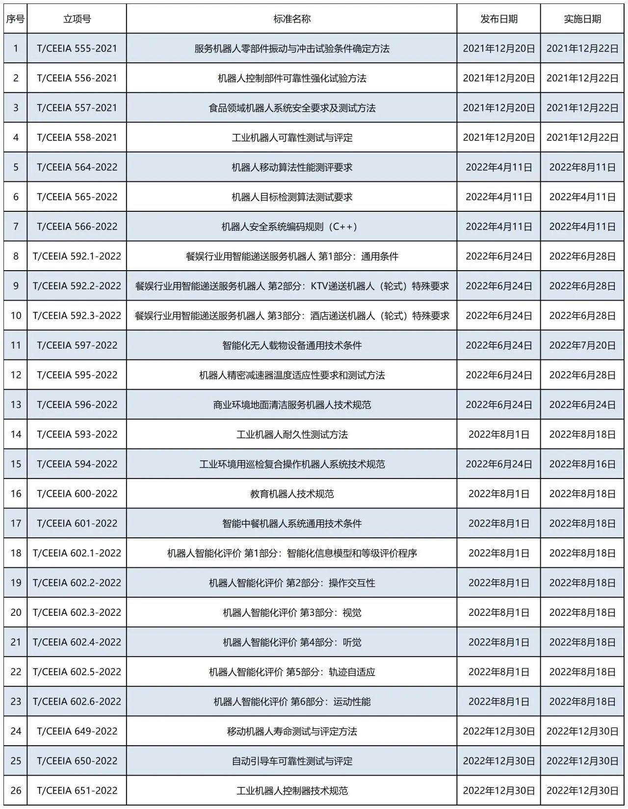 中电协电气场所用工业机器人安全与检测标准化专业委员会(CEEIA/TC50)成立于2019年4月,其上级管理部门中国电器工业协会为AAAA级社会组织,主要负责机器人领域团体标准制修订工作。目前发布团体标准26项,在研标准25项。